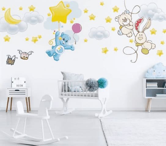 - ورق الحائط ثلاثي الأبعاد المطبوع: يتميز بتصاميم ملونة وجذابة رسمت عبر تقنيات الطباعة الحديثة.