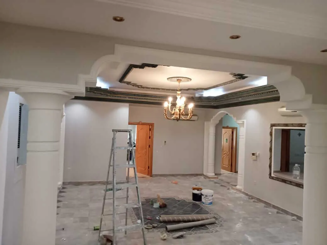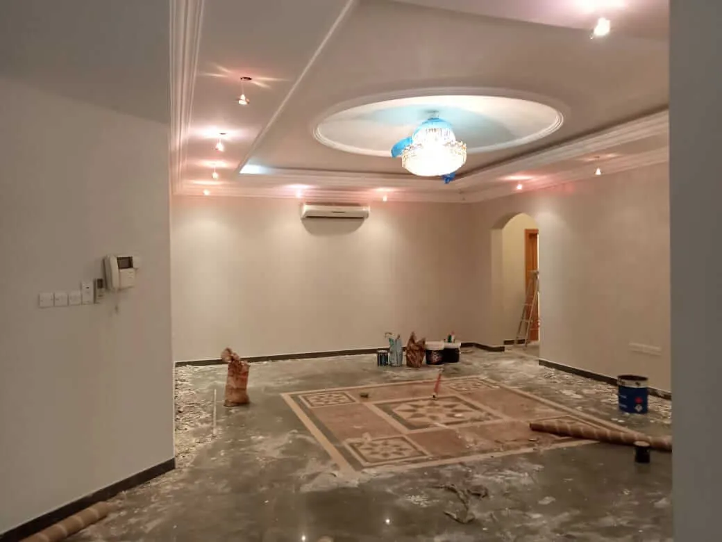 • بعد الإنتهاء من جميع مراحل وعمليات الدهانات، يتم تنظيف المكان بالكامل وإزالة أي بقع متواجدة على الأرضيات.