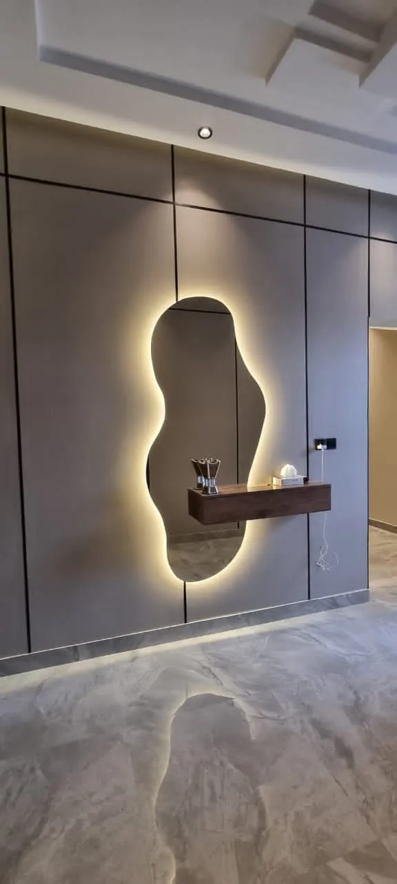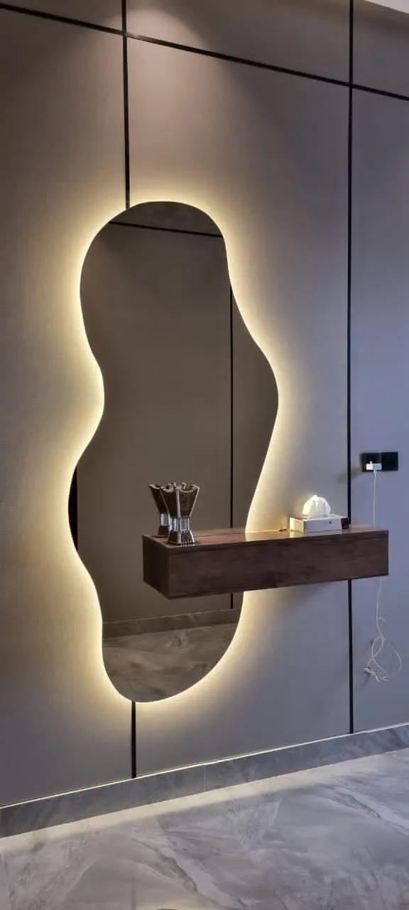 - التصميم: اختر تصميم المرآة بحيث يتكامل مع باقي العناصر الديكورية.